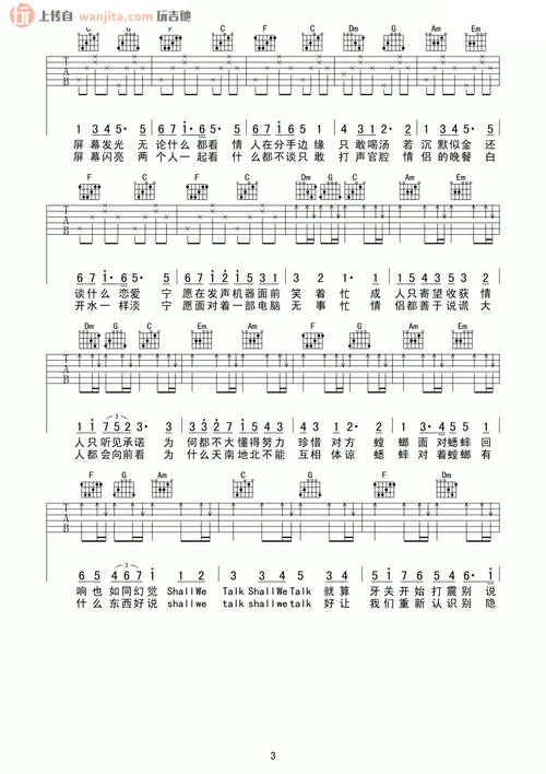 陈奕迅《shall we talk》吉他谱_c调吉他弹唱谱【双语高清版】
