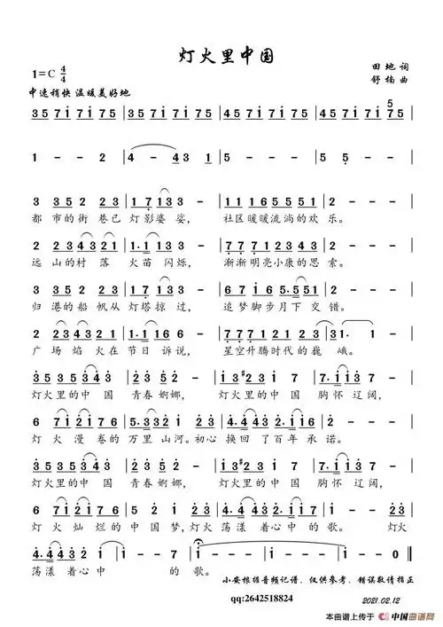 灯火里的中国(简谱 廖昌永 王莉 张也 周深 春晚)