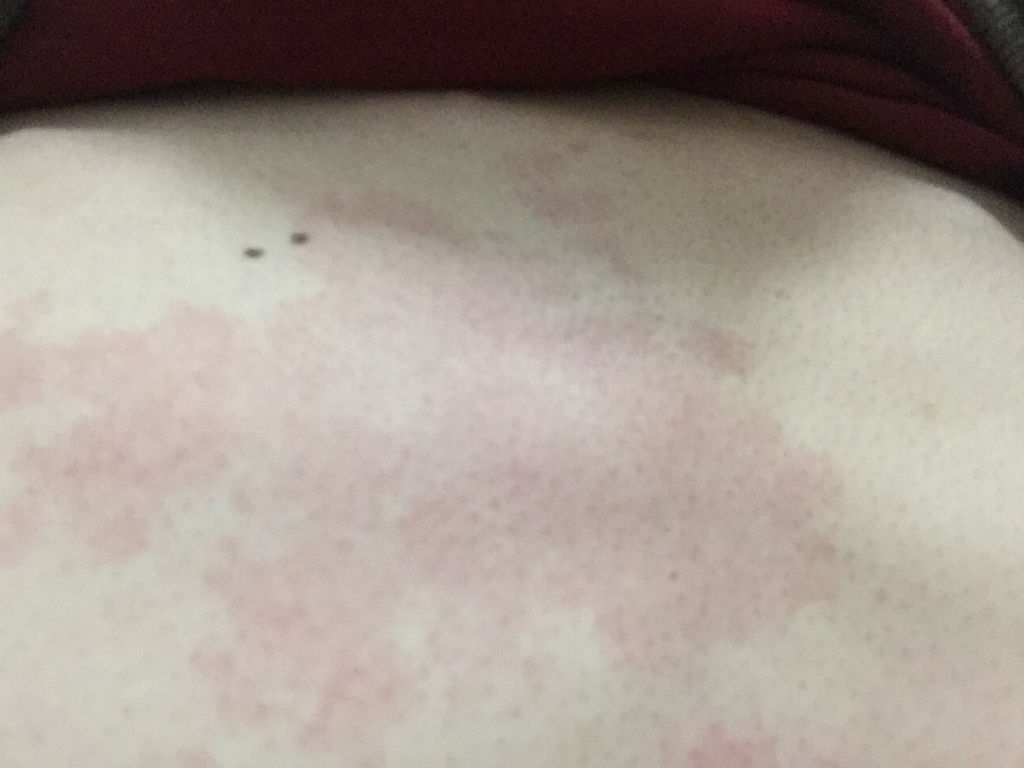胸口起这样的红斑 痒 而且抓还有皮 刚开始没注意