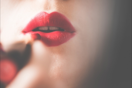年轻漂亮的女人用红色的唇膏 font color=red>4k /font>图片