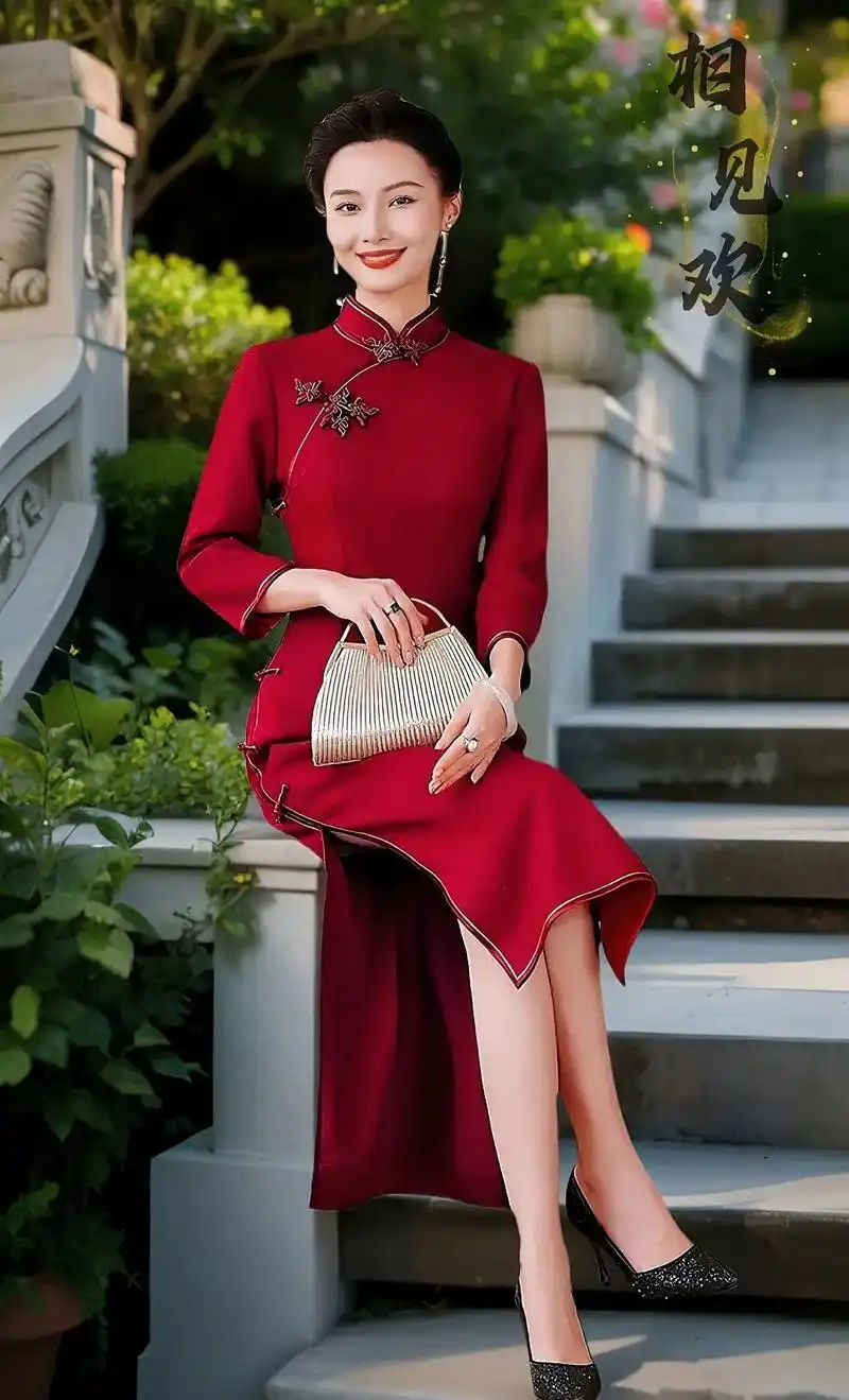宝子们,快来瞧这款 c29 高档金丝羊毛呢旗袍!2024 秋冬季必备