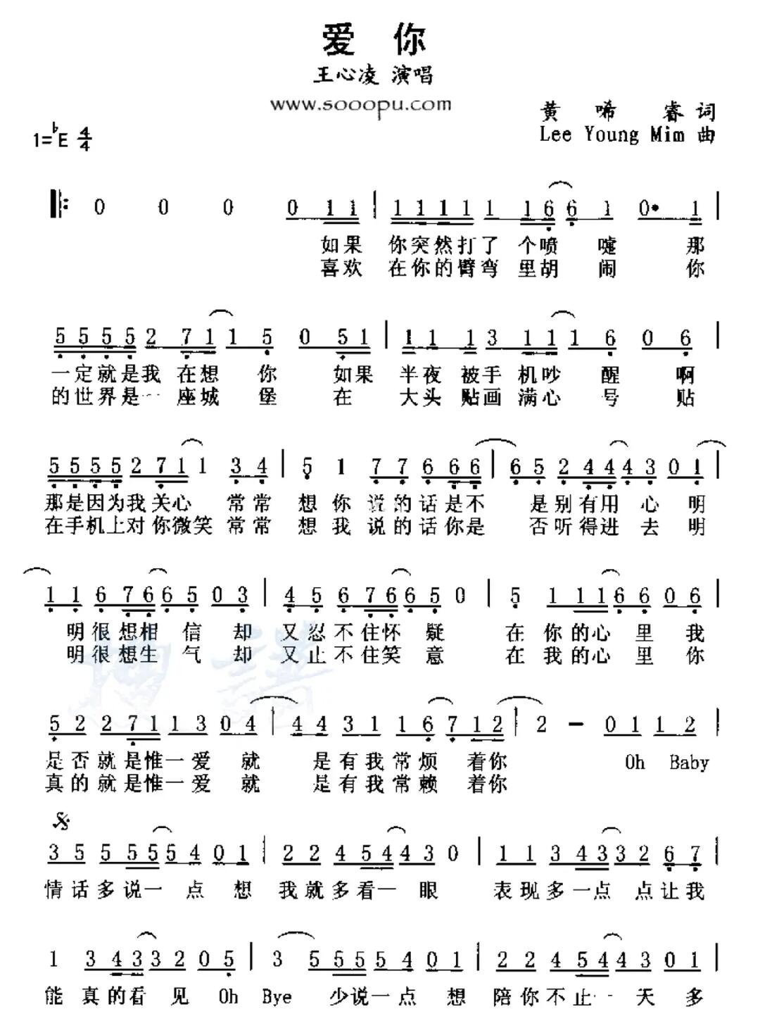 王心凌爱你简谱