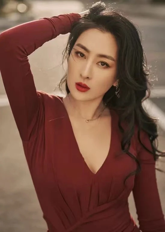 41岁马苏罕晒性感照穿深v礼服小露事业线身形纤瘦呈s型