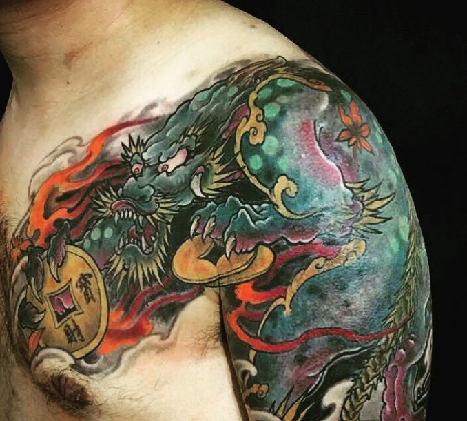 青龙半甲纹身图片_老传统纹身图案