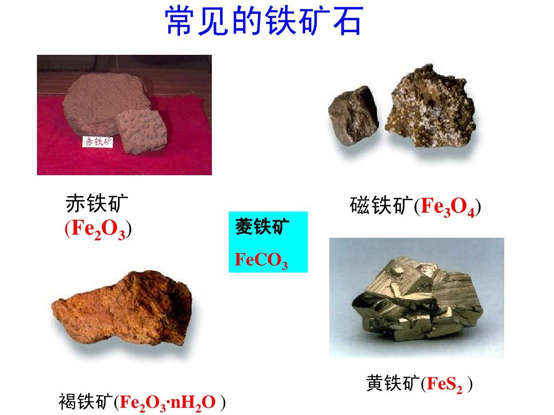 常见的铁矿石 赤铁矿 (fe2o3) 菱铁矿 磁铁矿(fe3o4) feco3 褐铁矿(fe