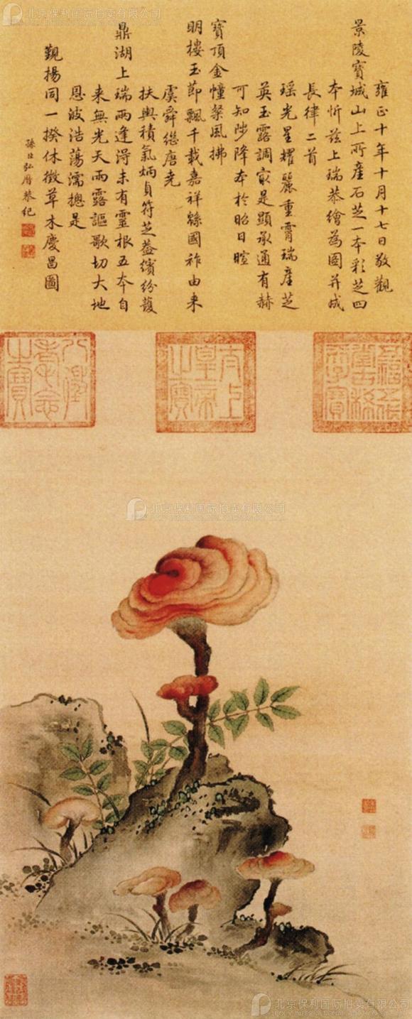0595 庚寅(1950年)作 灵芝献寿 立轴 纸本