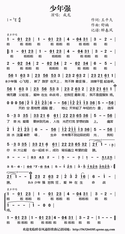 少年强简谱及歌词歌谱