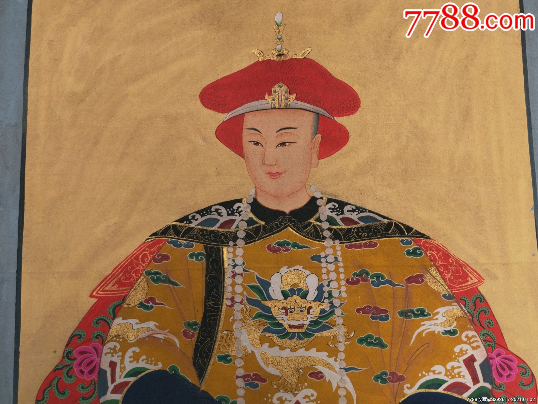 民国精品纯手绘老粗布五彩描金大清十二帝画像之同治皇帝全品满工完整