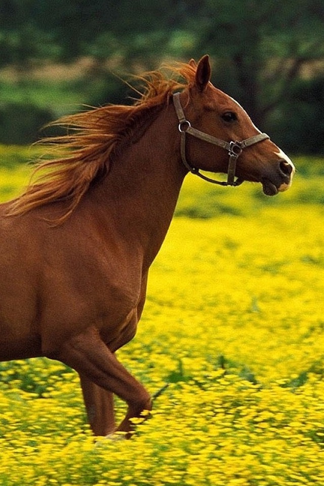 马在黄色的花场中奔跑 iphone 壁纸