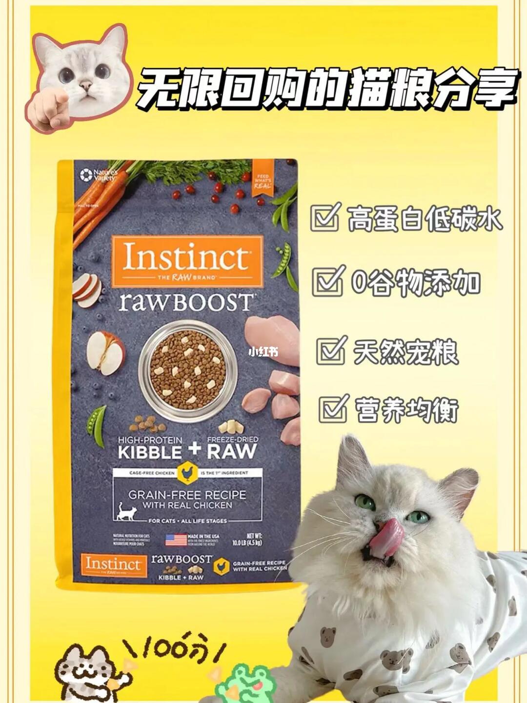 instinct百利猫粮原食生鲜鸡肉454kg10磅