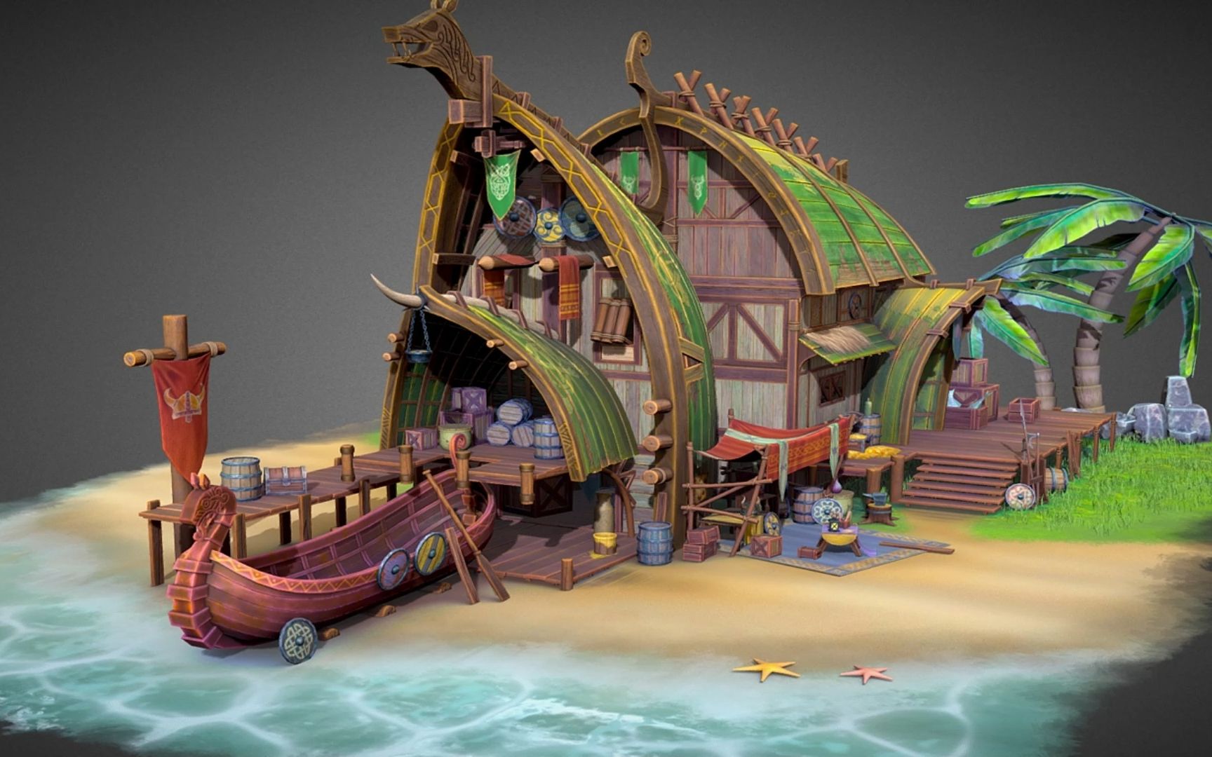 【3dmax场景建模】风格化卡通海滩小屋模型制作,适合新手的场景建模