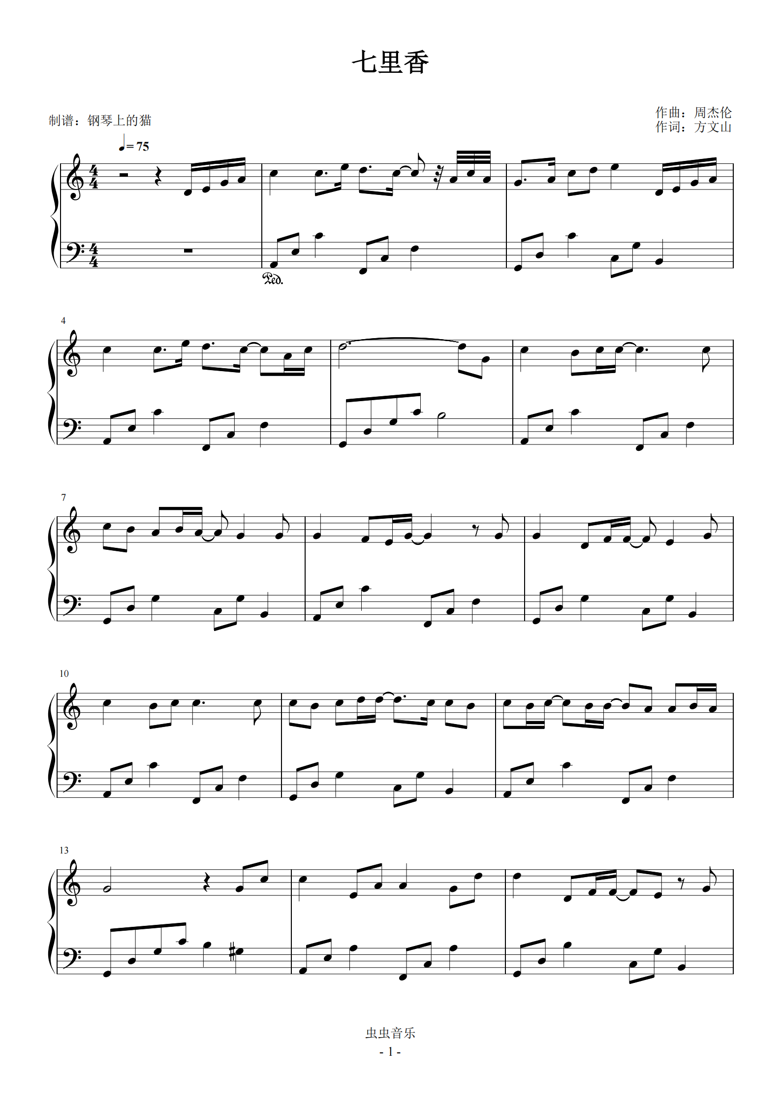 周杰伦【七里香】钢琴谱-猫咪曲谱-虫虫钢琴