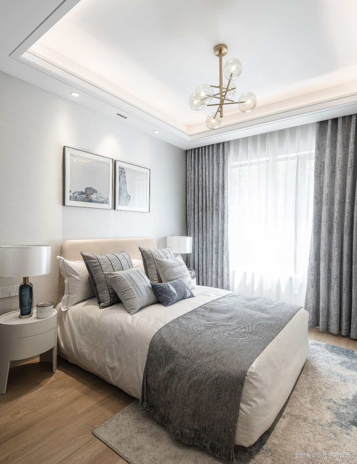 德州四季印象样板间c户型卧室窗帘现代简约卧室设计图片赏析