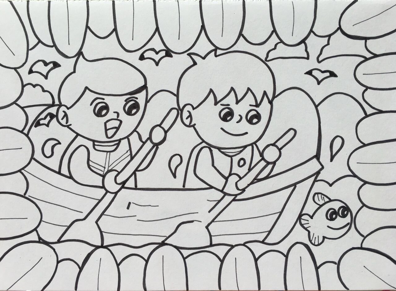 儿童简笔画-134.划船/赛船 夏日滤镜