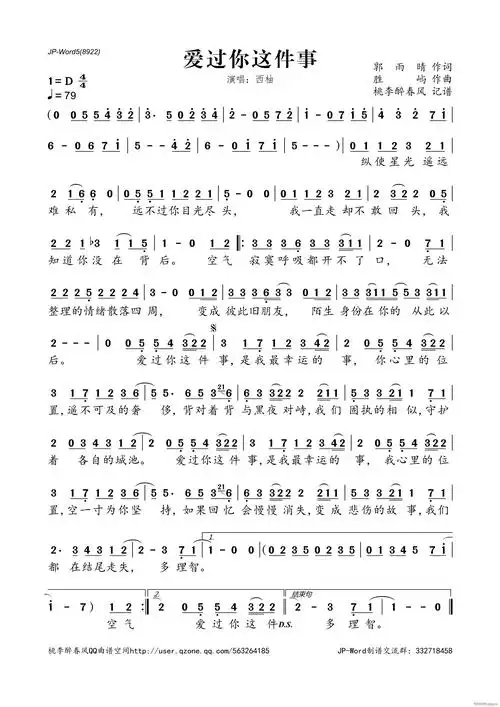 西柚-爱过你这件事钢琴谱五线谱(附歌词)