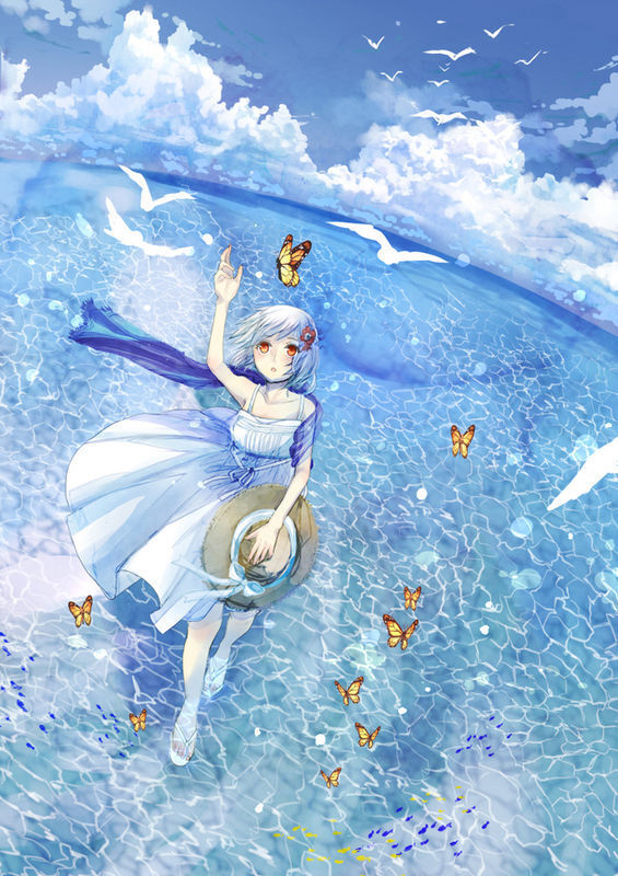 蝴蝶和女孩在一起的唯美pixiv插画图片