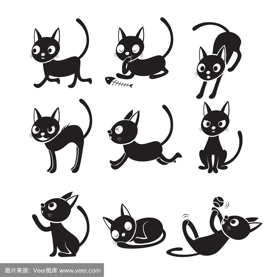 卡通猫咪动作动态玩耍呆萌可爱宠物