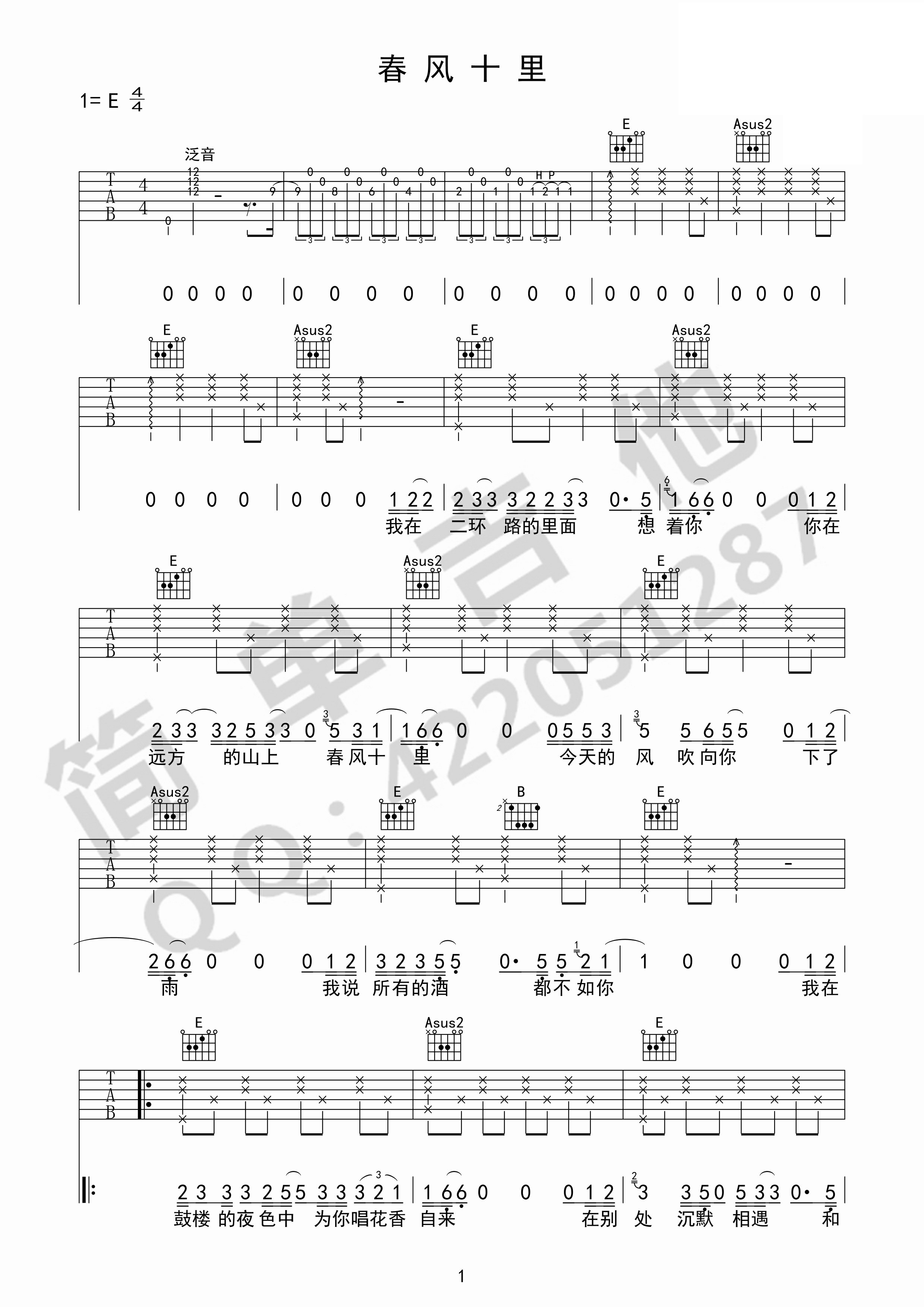 春风十里 - 吉他谱 - 歌谱简谱大全