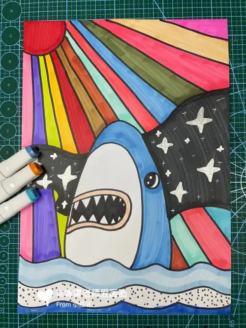 儿童画鲨鱼 #少儿美术教育 海底世界鲨鱼来啦 - 抖音