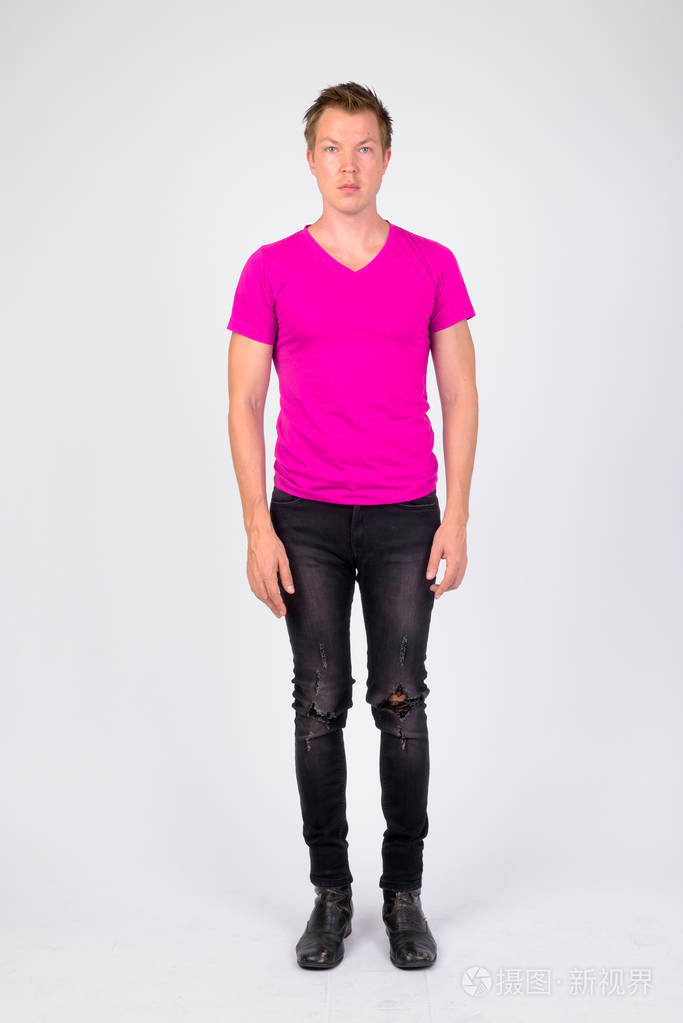 穿着紫色衬衫的年轻帅哥的全身照照片-正版商用图片15txjs-摄图新视界