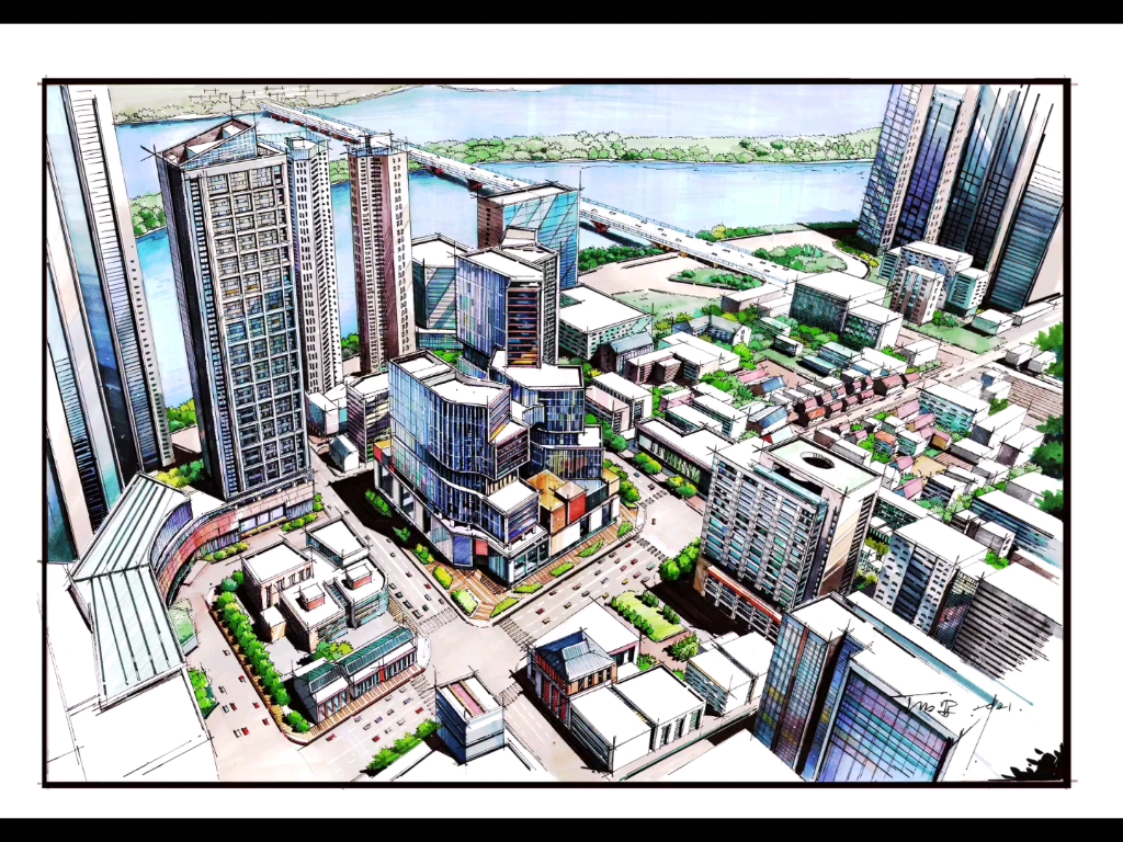 【城市鸟瞰】马克笔手绘