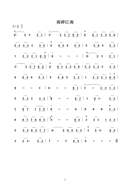 雨碎江南笛子简谱乐谱