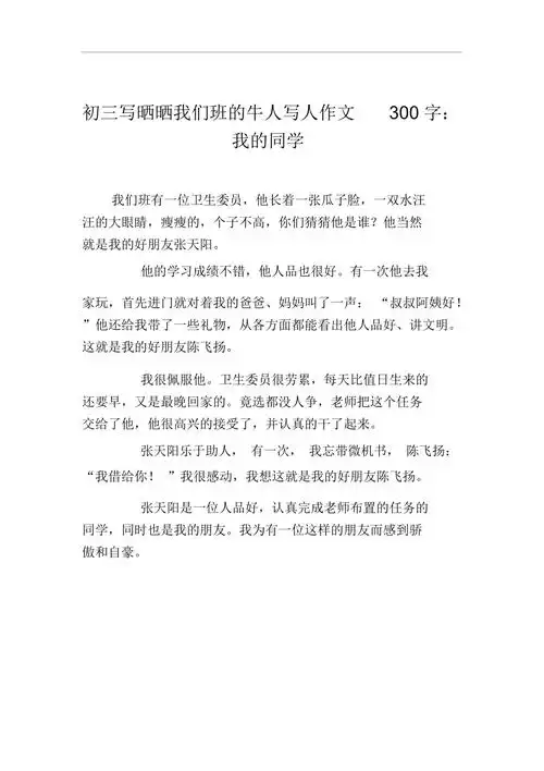 初三写晒晒我们班的牛人写人作文300字我的同学