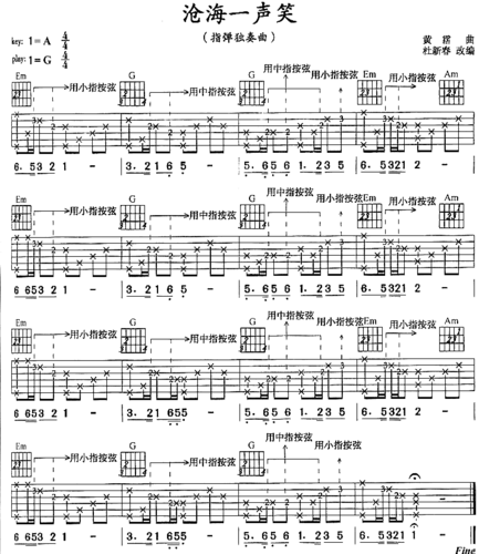 《沧海一声笑-(独奏版)》吉他谱--中国乐器商情网