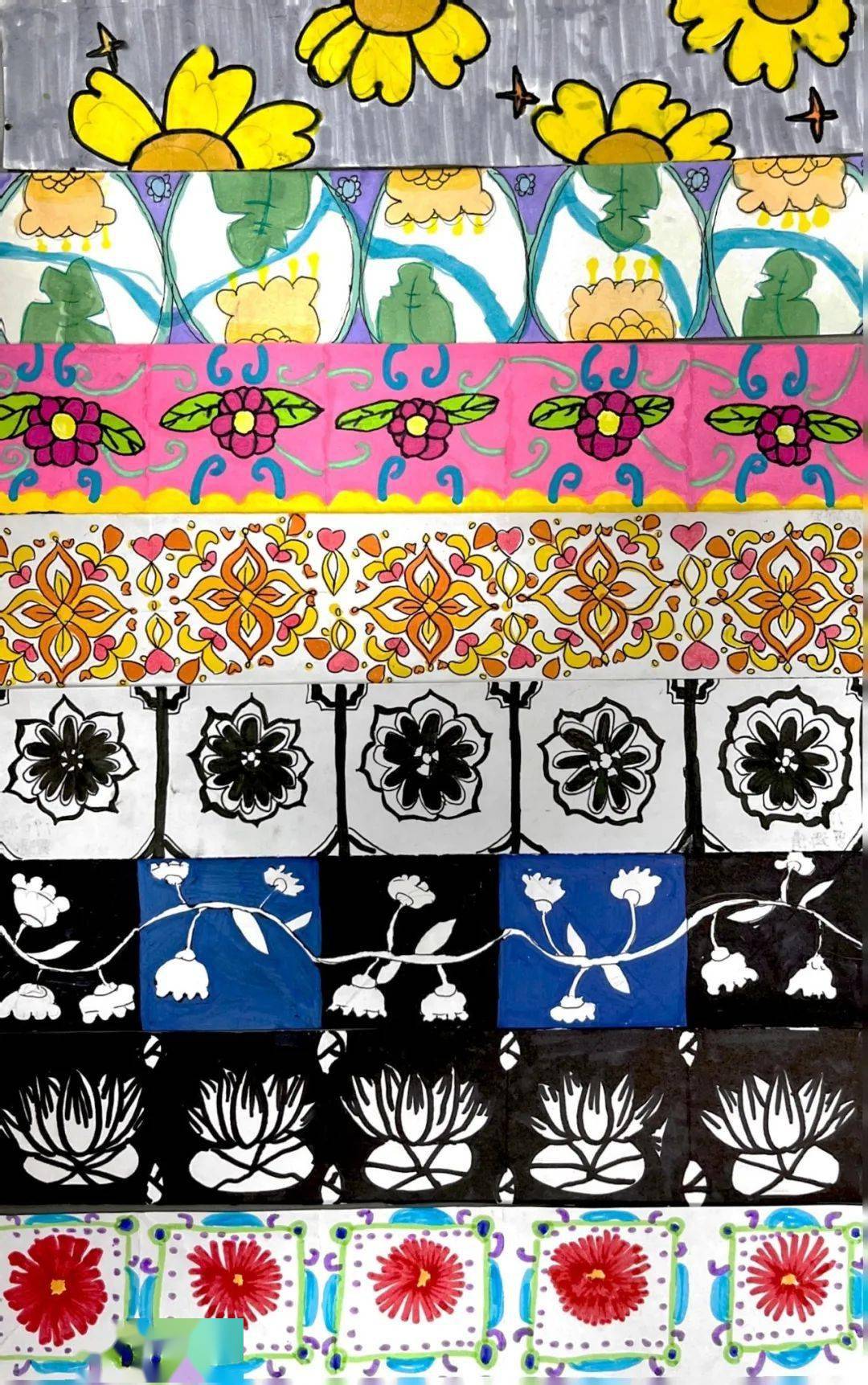 禹点美术|花儿朵朵——四年级二方连续纹样作品展_花卉_禹娃_传统