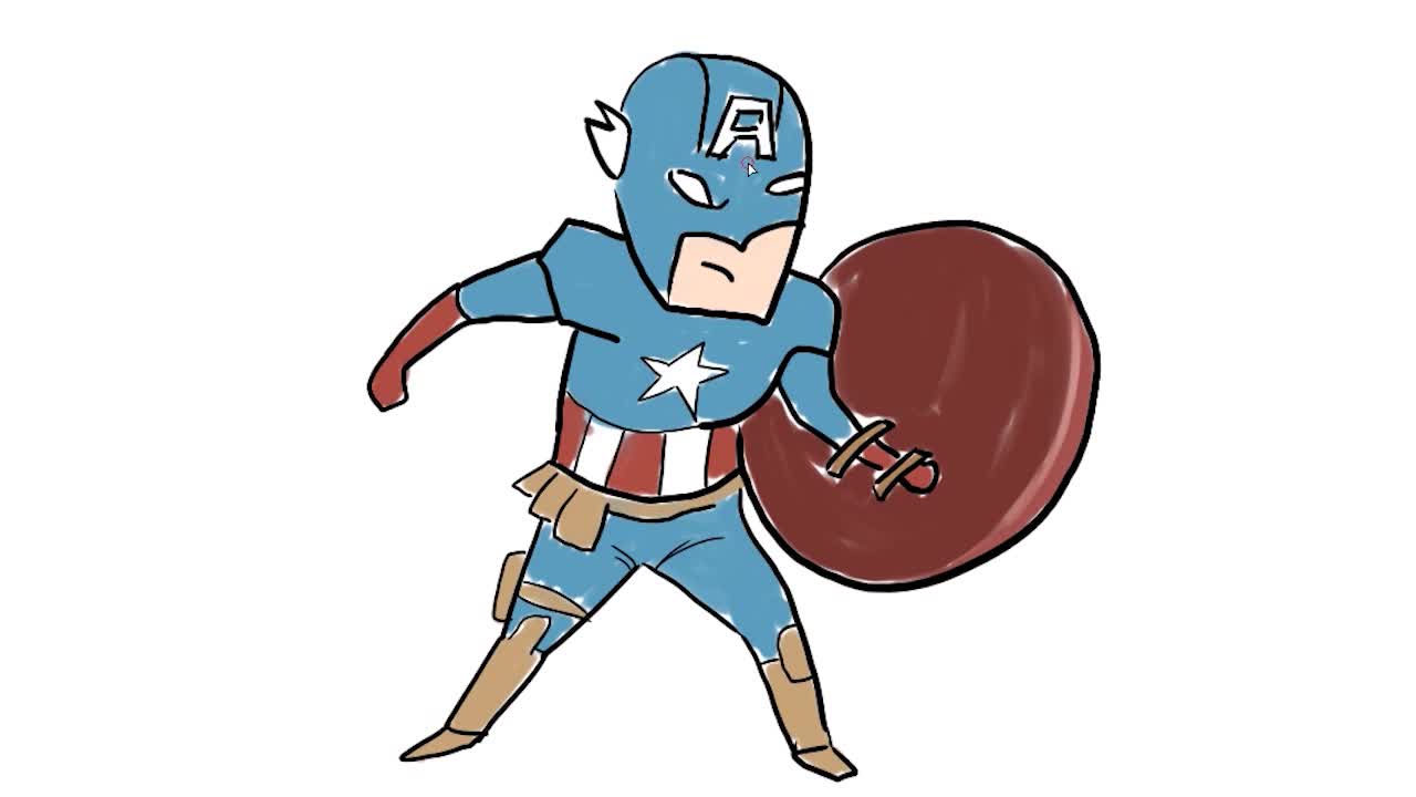 在整个配色上使用多种颜色作为基础色调,设计了酷帅的美国队长,卡通