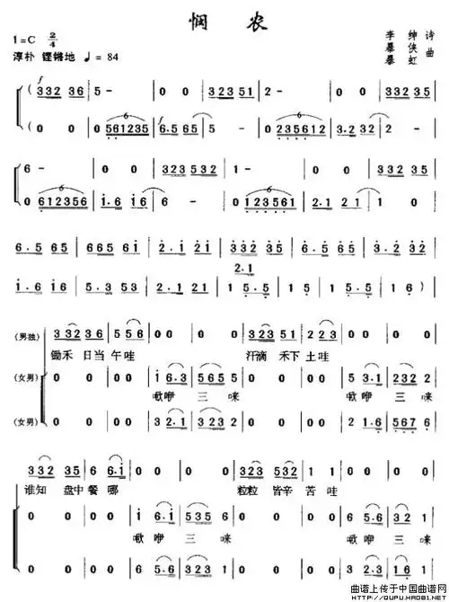 (唐)李绅:锄禾(李群曲 简线对照) 歌谱简谱网