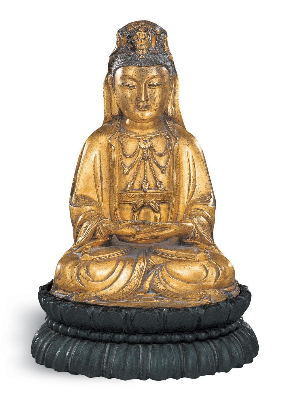 清铜鎏金观音坐像