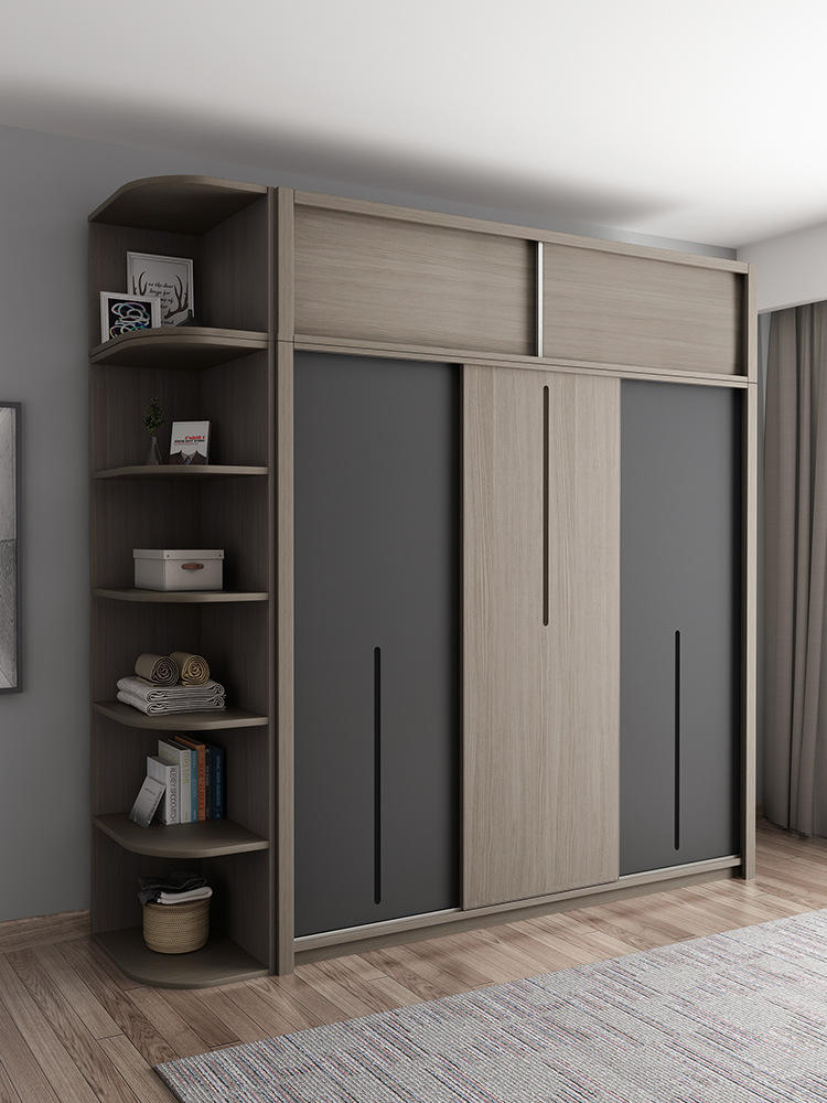 北欧简约卧室小户型推拉门衣柜家用胡桃木组装滑门大衣橱