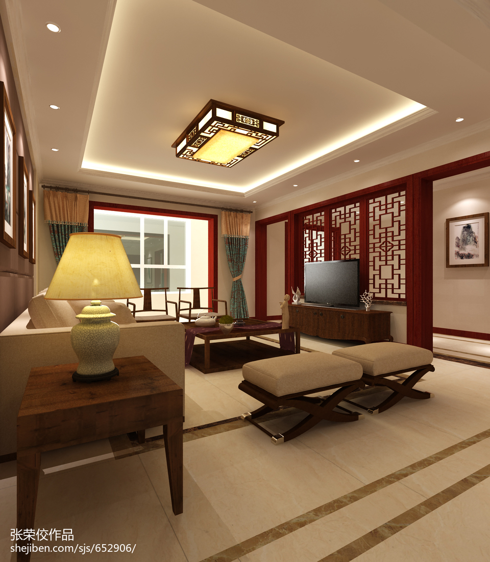 150平米简中式客厅天花板设计装修效果图