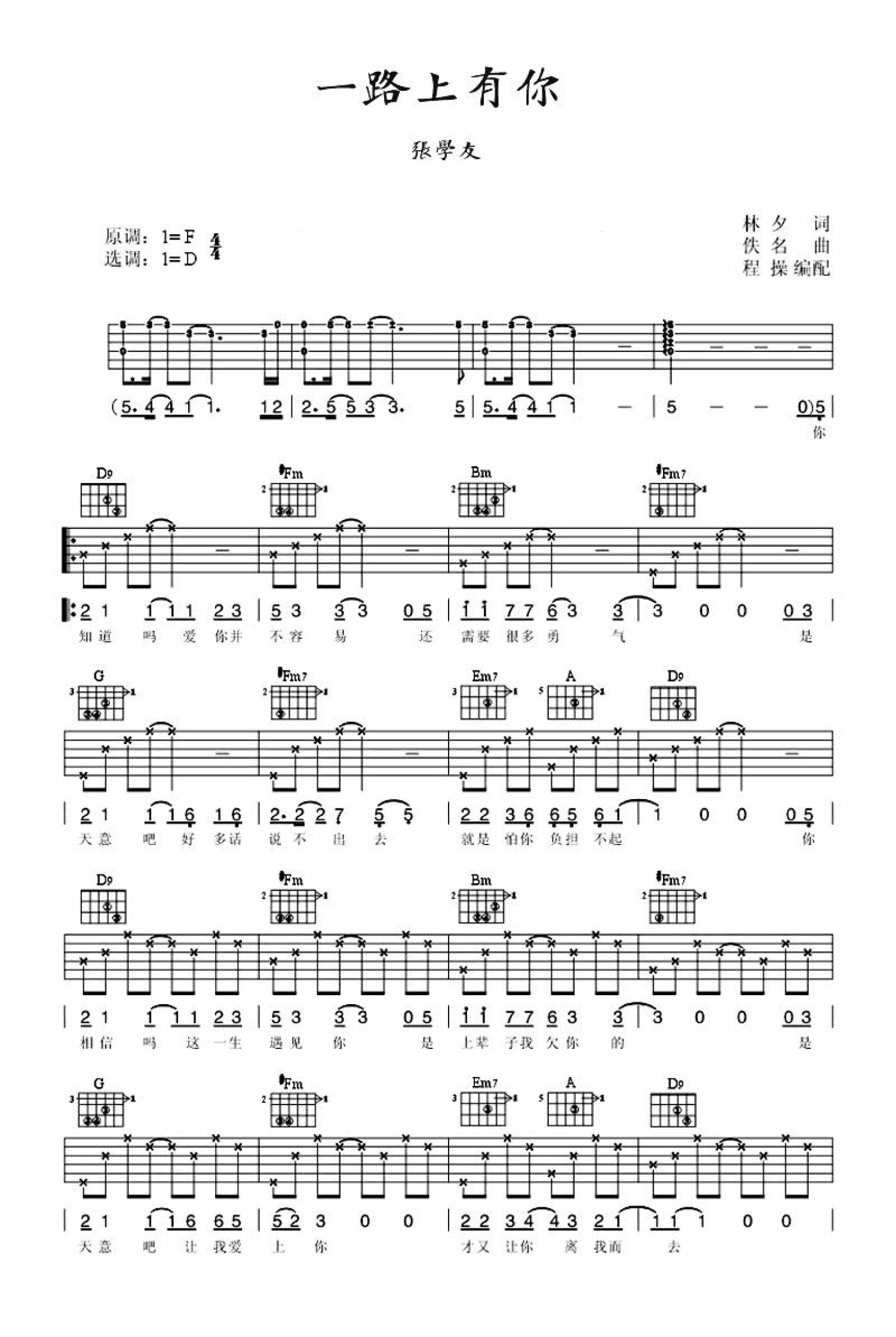 张学友一路上有你吉他谱d调吉他弹唱谱