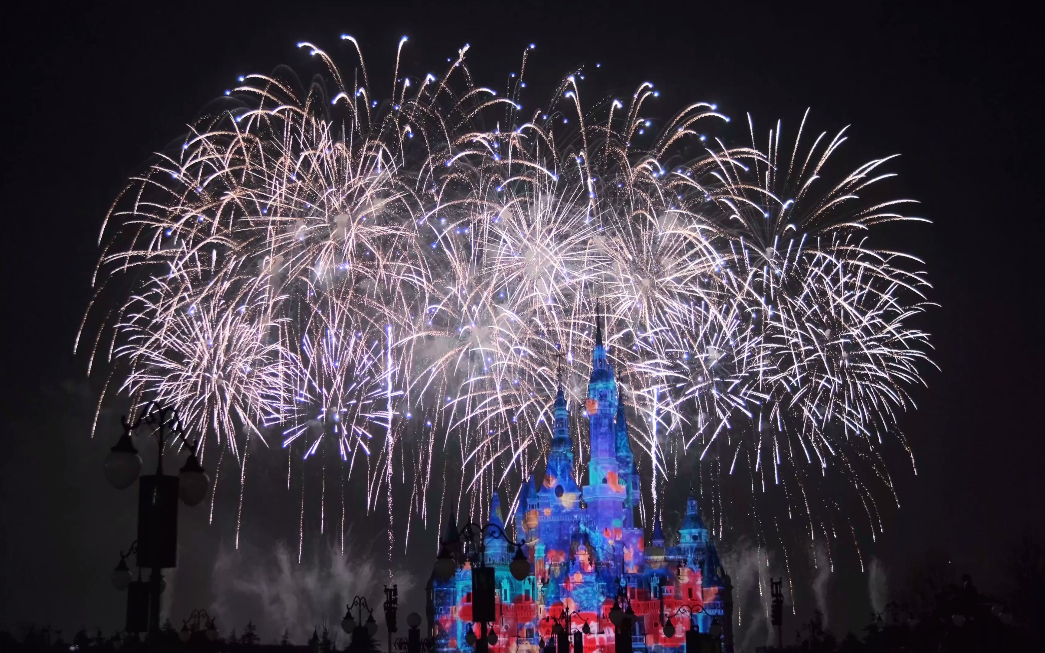 迪士尼动画100周年庆典上海奇幻城堡烟花表演4k视频(14pro拍摄)