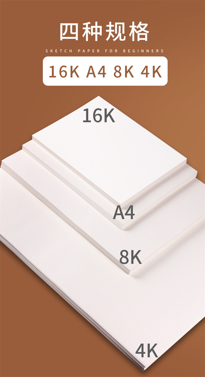 初学者100张8k素描纸4k画画纸儿童涂鸦8开素描本a4水粉纸美术生专用a3
