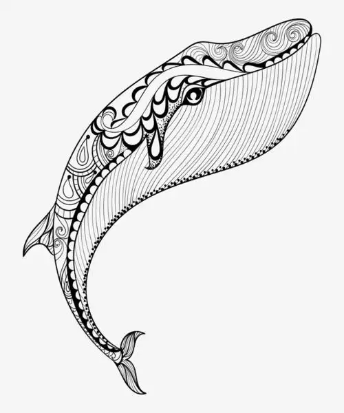 大鲸鱼黑白图腾线稿