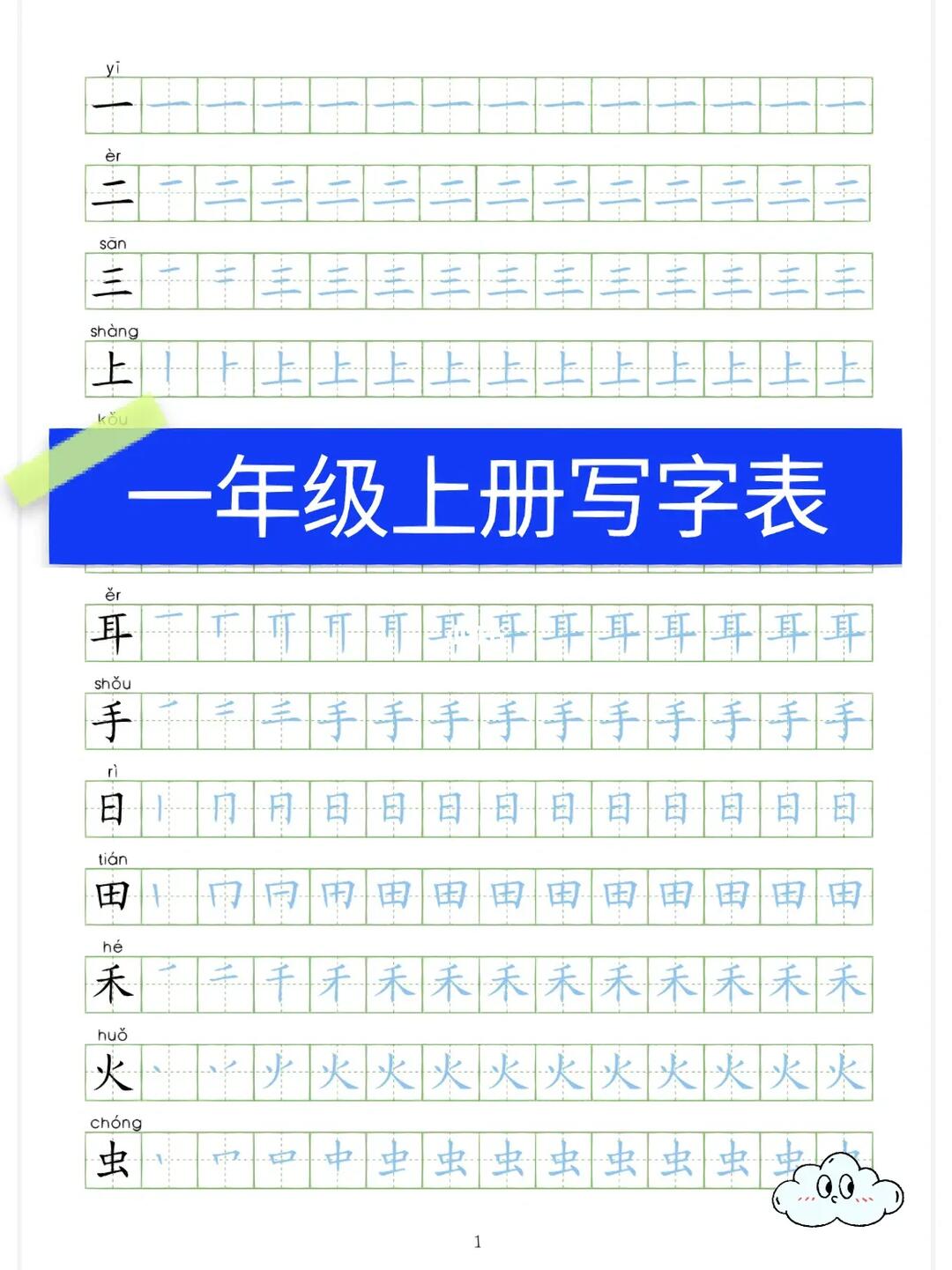 人教一上新版写字表笔顺字帖