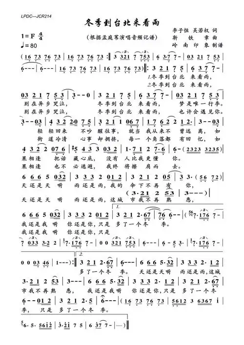 大约在冬季_齐秦_歌谱歌词_曲谱资料