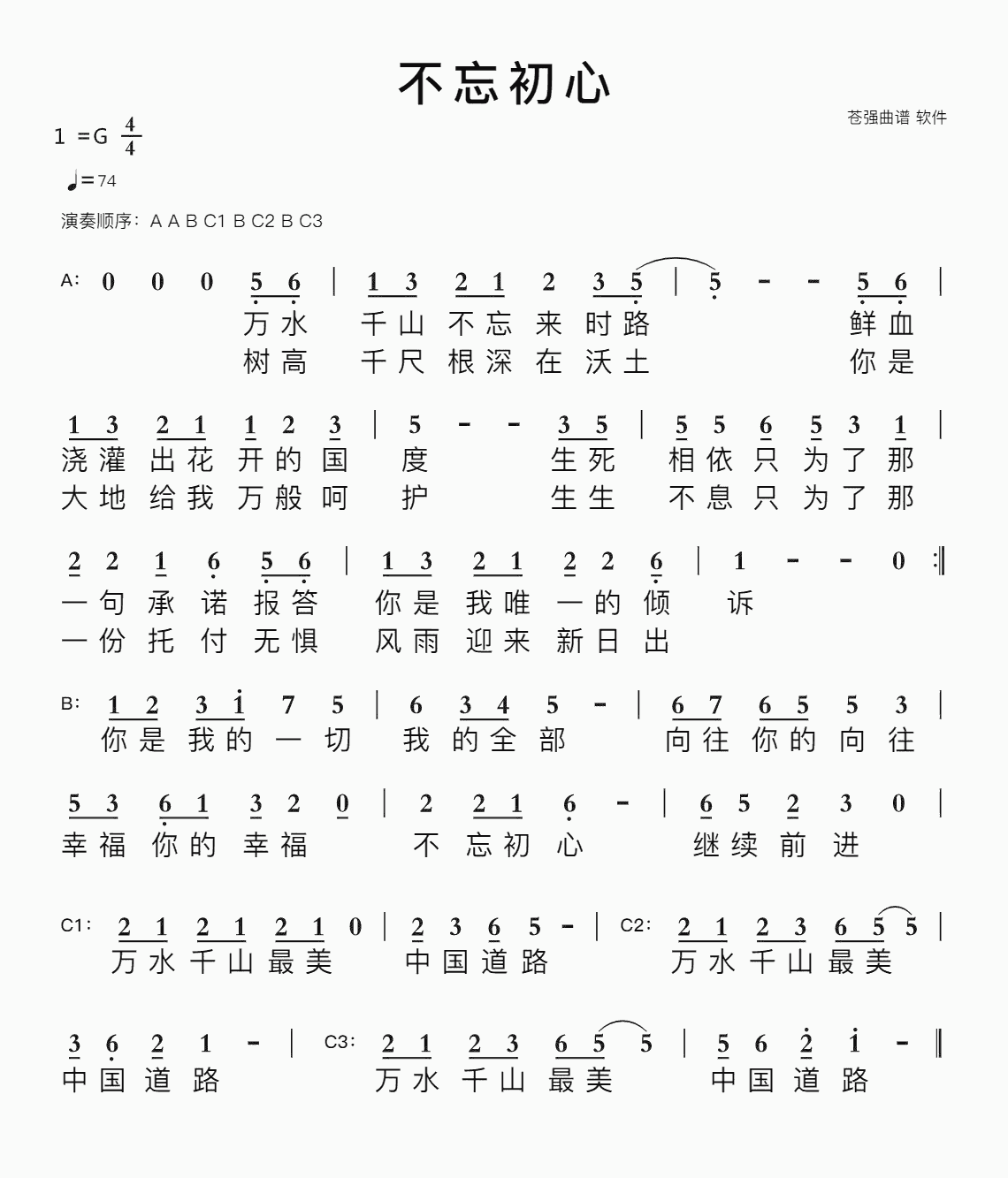 不忘初心(版本二)简谱视唱 歌谱-苍强曲谱