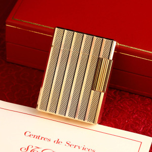 t.dupont都彭充气打火机朗声l2大号镀银竖条纹男士收藏正品包邮