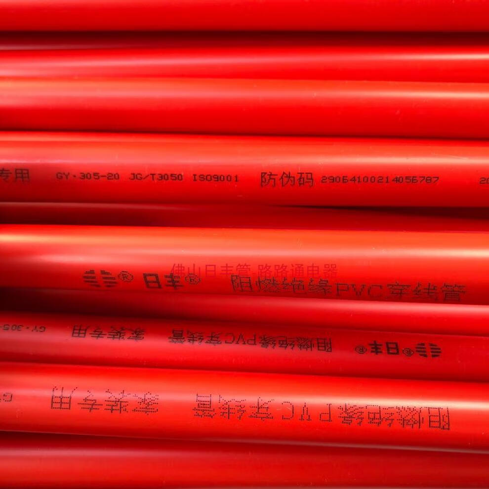猛仕将佛山日丰管红蓝线管阻燃管pvc线管电线管46分电工穿线管20暗线