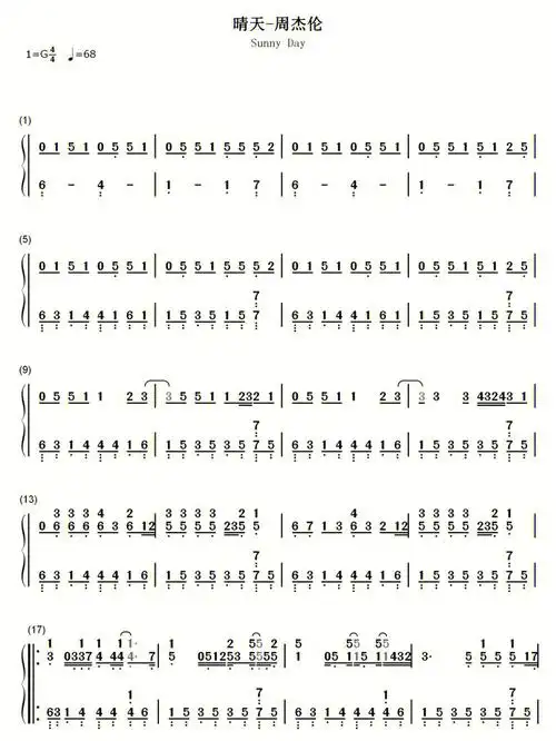 晴天简谱-周杰伦演唱-孙世彦曲谱1