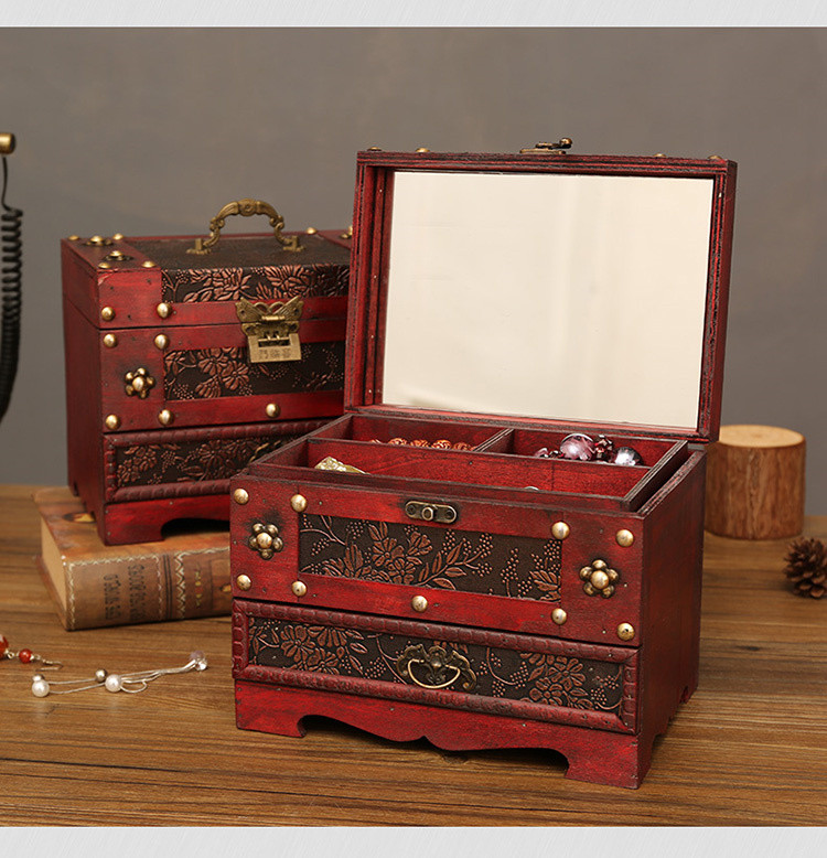 絮旧收纳家用国风风中古风红木珠宝老红大红饰品盒