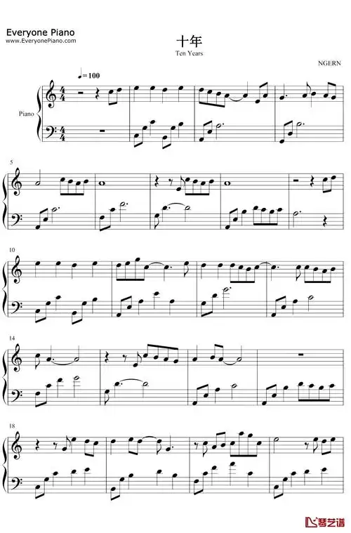 十年-陈奕迅钢琴谱-陈奕迅十年钢琴谱-环球钢琴网