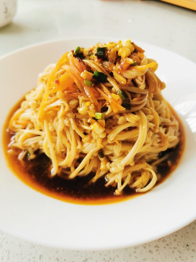 凉拌金针菇口感一级棒超级开胃做起来非常简单