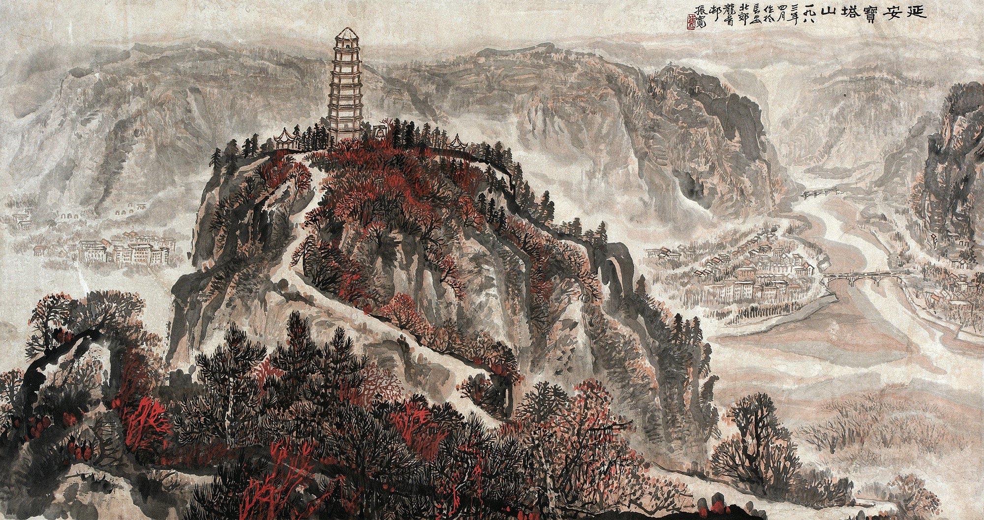 【延安宝塔山 镜片 设色纸本】拍卖品_图片_价格_鉴赏_绘画_雅昌艺术