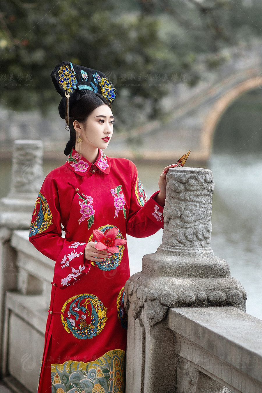 典型的清朝服饰红色设计显示娇共p