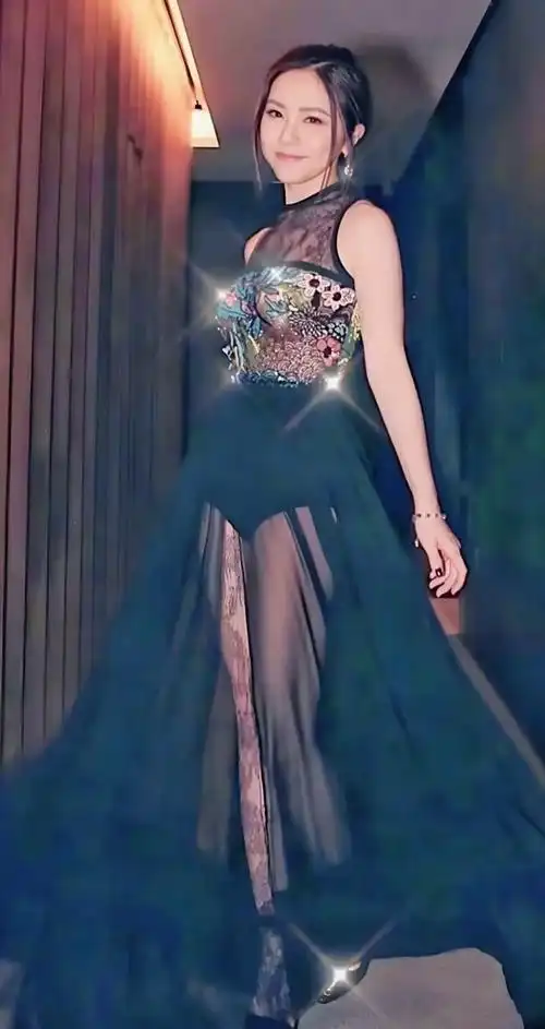 邓紫棋穿着黑丝袜.